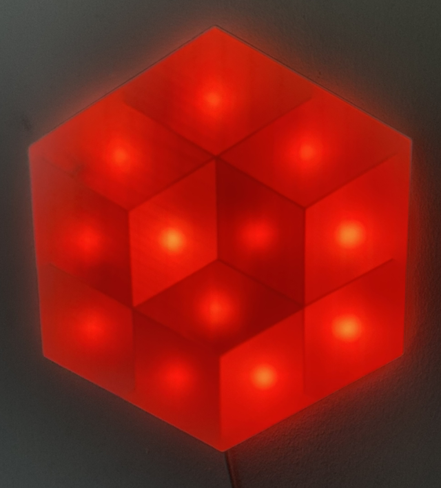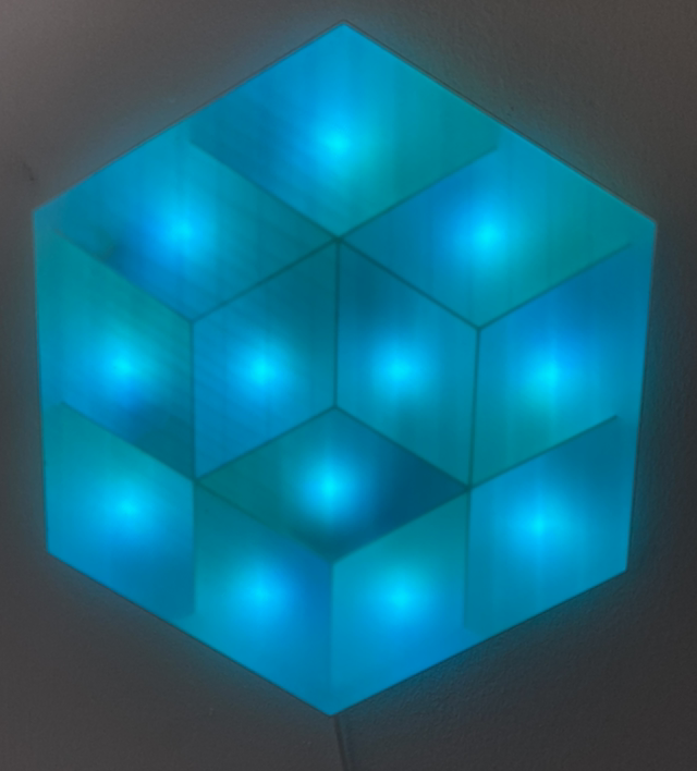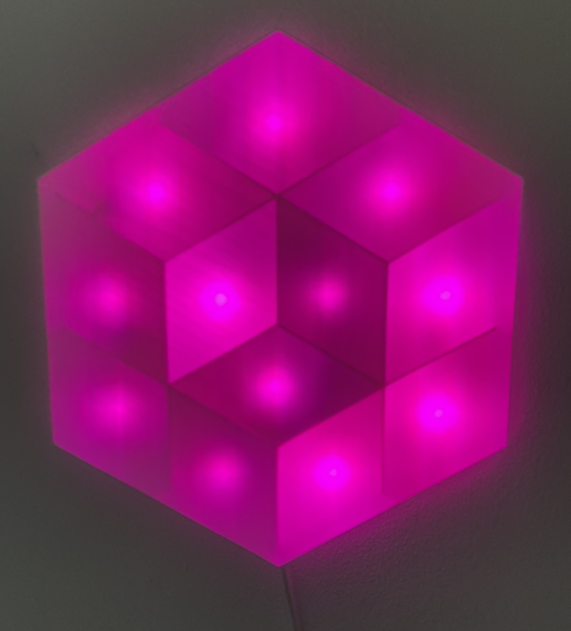 Kinetic Light Object. 3D printed. USB powered. Random Color on Start, slow light fading, alternating between looking flat and having depth.